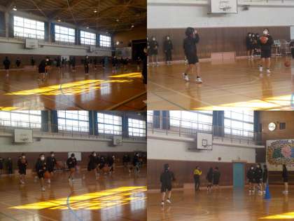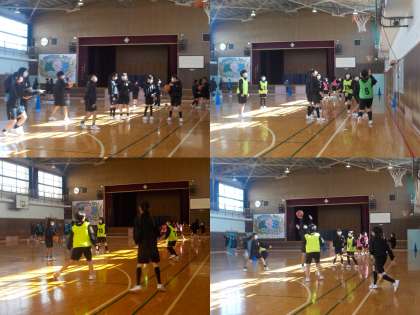 バスケットボールの授業が行われ、「ディフェンスがついた状態でボールを見失わずにパスをつなぐことができる。」が本時の目標です。