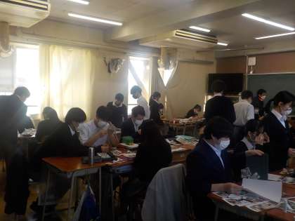 生徒の皆さんは、班ごとに協力して、楽しそうに作業を進めていました。