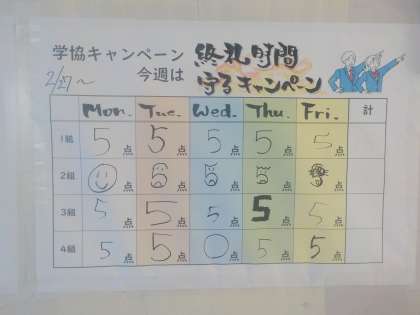 3月6日(月)1年生 終礼時間守るキャンペーン終了