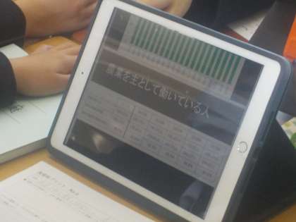 多くのデータを活用して、班で交流しています。
