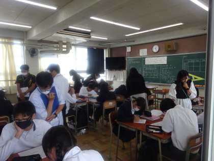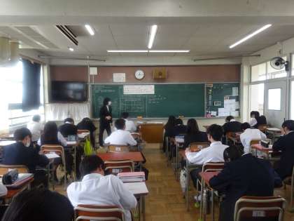 2年2組の教室では数学の教育実習生が研究授業をしていました。