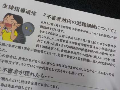 今日の6校時は、不審者が学校内に侵入したことを想定した、避難訓練が行われます。