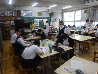 友達の絵を見に行く生徒や、アドバイスを貰いに行く生徒もいます。