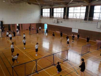 体育館全体に4つのコートが設置されています。