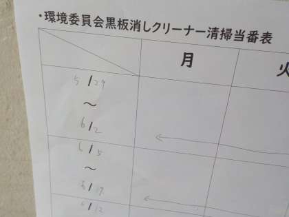 環境委員会による黒板消しの取り組みです。