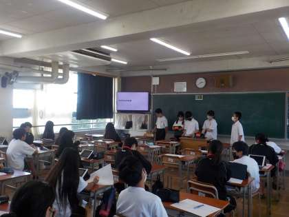 2年生では、校外学習(宇治方面)の発表会が行われました。