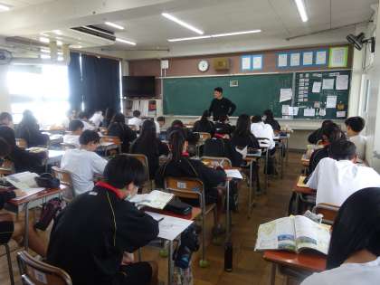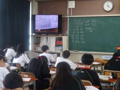 地形や気候の分野では、モニターにタブレットの地図機能を映し出し、視覚的にも分かりやすい授業が進められていました。