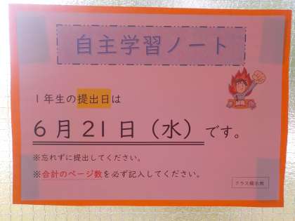 6月20日(火)1年生 自主学習ノートの提出