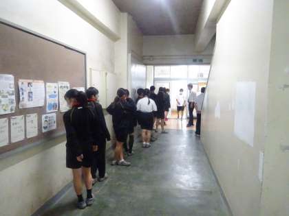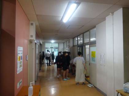 1校時に1年生が終わり、現在2年生が検診中です。