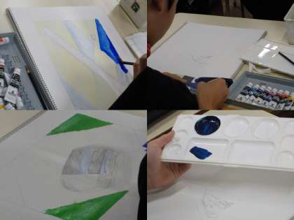 完成したデッサンに色を入れることで、躍動感が生まれます。