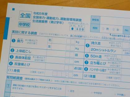 全国体力・運動能力・運動習慣等調査の記入の作業です。