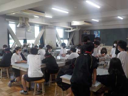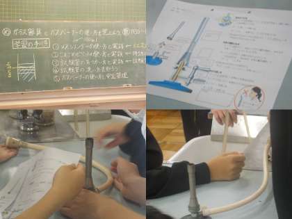 「ガラス器具とガスバーナーの使い方を覚えよう」が授業のめあてです。