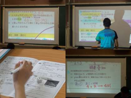 生徒の皆さんのプリントに合わせて、ていねいな説明がホワイトボードをつかって、行われています。