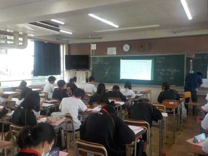 生徒の皆さんも説明を受けて、プリントに記入しています。