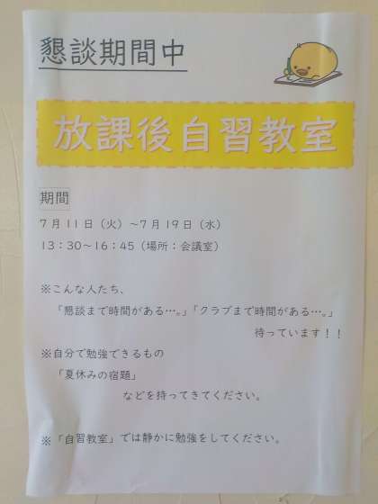 7月6日(木)懇談期間中の放課後自習教室