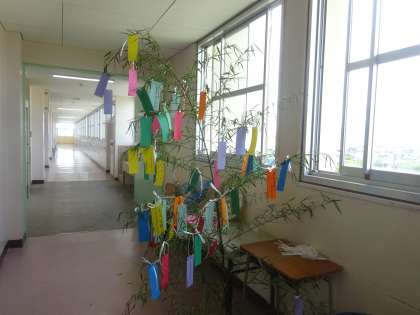 2年生のフロアには明日の七夕に向けて、笹が飾られていました。