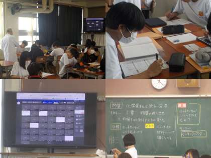 化学変化と原子・分子について、班学習が行われています。