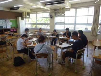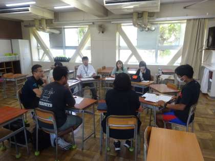 小中学校の教員がグループごとに話し合いをしました。