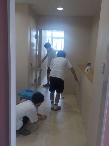 夏休み中のトイレ清掃は、各クラブごとに分担して行われています。