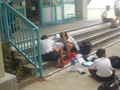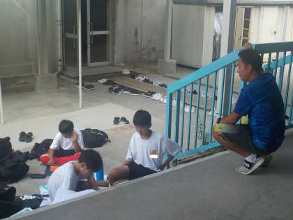 クラブ活動の合間の時間にも、宿題に取り組む様子が見られます。