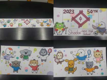 11月に実施されます招提中学校創立50周年記念式典に向けて、美術部の生徒の皆さんが素晴らしいイラストを作成してくれました。