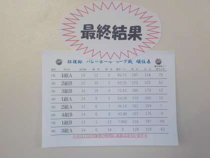 1年生の体育の授業で取り組んでいるバレーボールの試合の最終結果がでました。