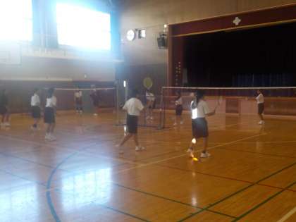 バドミントンのラリーの練習です。