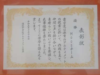 チームで協力して、取り組んだことが表彰状に記載されています。