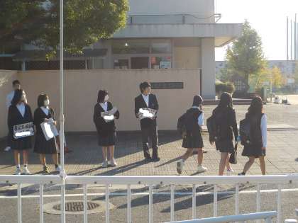 校門の中や外など、立候補者の皆さんは、積極的に動いて声をかけています。