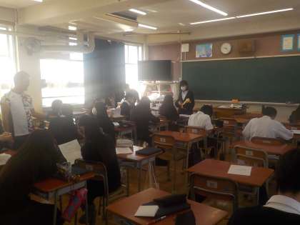生徒間で注意事項などの確認をしています。