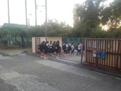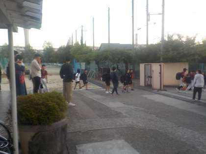 クラブ活動を終えて、友達と楽しく話をしながら、帰宅する様子が見られます。