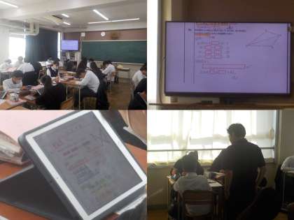 iPadやテレビ画面に示された問題に取り組んでいます。