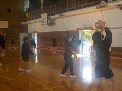 オーバーハンドパス、アンダーハンドパスをつかって、一回でも多くバスをつなげていきます。