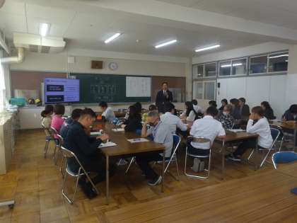 生徒の皆さんが帰宅した後、本日行われた研究授業の研究協議が行われました。