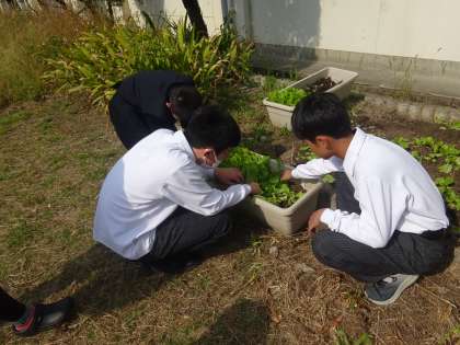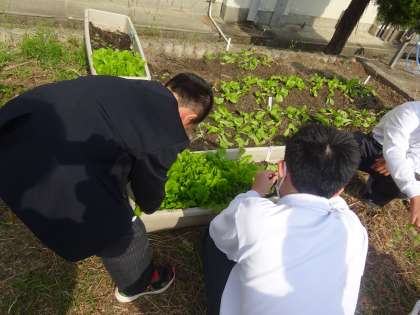 本日、支援学級にて野菜の収穫体験を行いました。