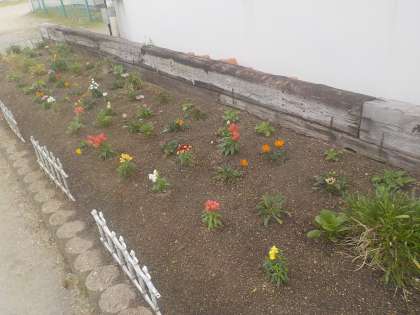 先日、環境委員の保護者の皆様に植えていただいた花壇の花の生長が見られます。