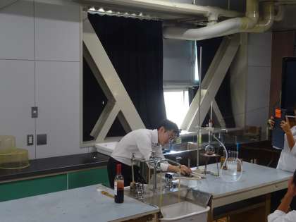 生徒の皆さんも真剣な眼差しで実験を見ています。