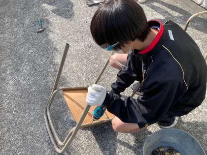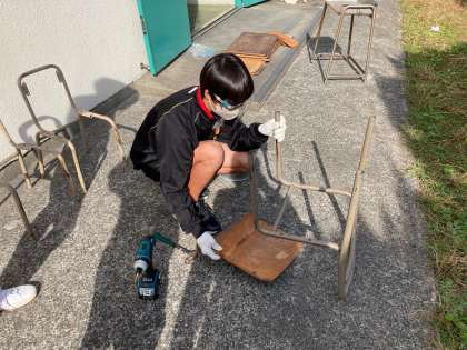 イスの解体作業をしています。