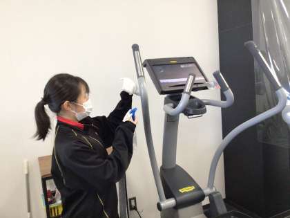 お客様がトレーニング中も従業員の方は、定期的に館内の消毒作業などをされているようです。