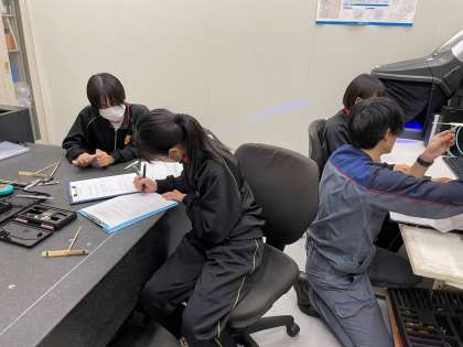 生徒の皆さんは、従業員の方から指導を受けたり、生徒間で相談するなど、前向きに取り組んでいます。