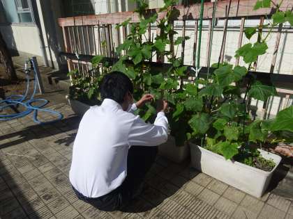 支援学級の授業で、きゅうりと二十日大根、