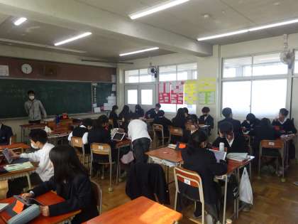 電気自動車賛成派と反対派に分かれ、グループ内で議論していました。