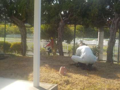 教室棟横の少し狭いスペースに新しい樹木が植えられています。