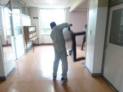 ステップ教室の机が古く、湿気により