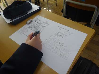 テスト範囲の地形の確認問題を全員で取り組んでいました。