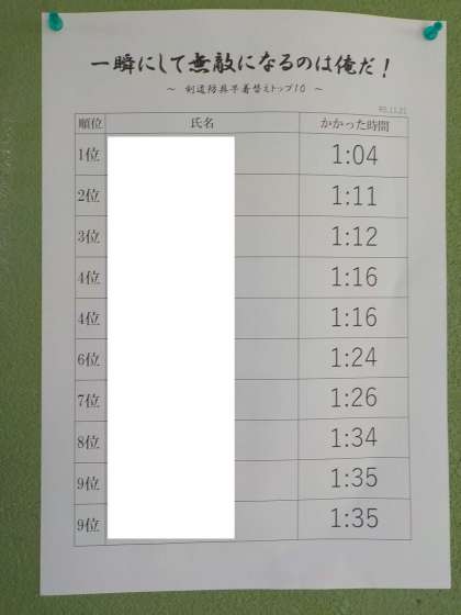 11月22日(水)2年生 男子体育 剣道防具早着替えトップ10
