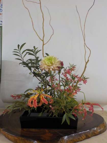 華道部顧問の教員が、いくつかの花を組み合せて、すばらしい作品に仕上げました。