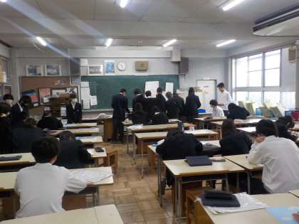 たくさんの生徒の皆さんが教卓の前に集まっています。