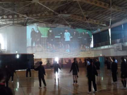 壁面いっぱいに画像が映しだされ、その動きを見ながら行うダンスに迫力があります。