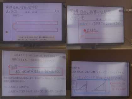 数学の授業の枠にとどまらず、日常生活との関連を図る考え方を示して、生徒の興味・関心・意欲を高めたり、段階的に理解を深めることができる教材を示したり、着実に理解を深めさせることができる仕掛けが見られました。